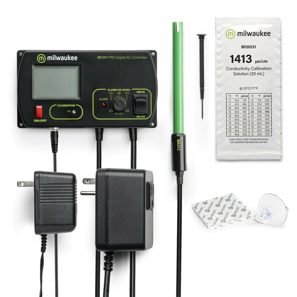 El controlador proporciona un rango de control de 0,0 a 10,0 mS/cm con alarmas que se activan cuando las lecturas son superiores o inferiores al punto de ajuste.